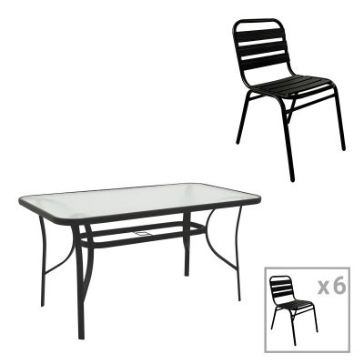 7. Τραπεζαρία Sussie-Ensure pakoworld 7τεμ μέταλλο-γυαλί σε μαύρη απόχρωση 140x80x70εκ