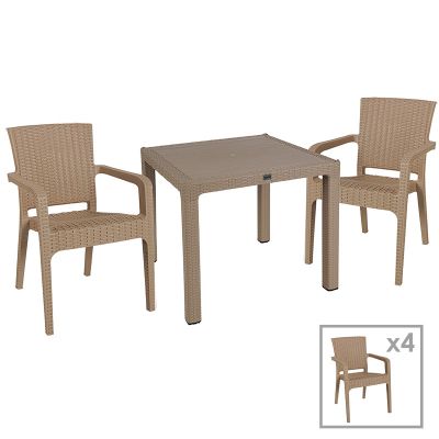5. Τραπεζαρία Icoan-Halcyon pakoworld σετ 3τεμ PP σε cappuccino απόχρωση