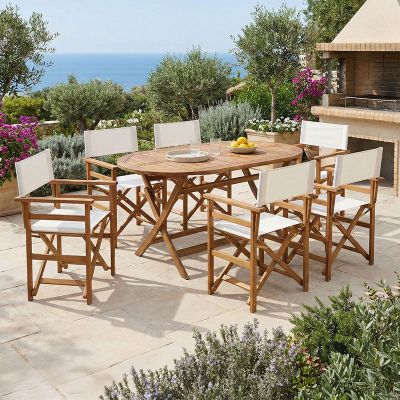 Τραπεζαρία Bistrual-Falov pakoworld σετ 7τεμ πτυσσόμενο φυσικό μασίφ ξύλο ακακίας 130x80x72εκ