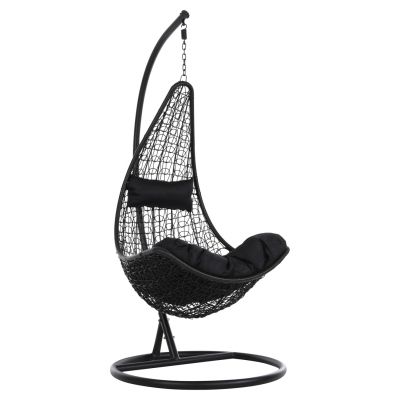 23. Κούνια Hudson pakoworld κρεμαστή μέταλλο μαύρο-pp φυσικό-μαξιλάρι μαύρο 109x119x195εκ