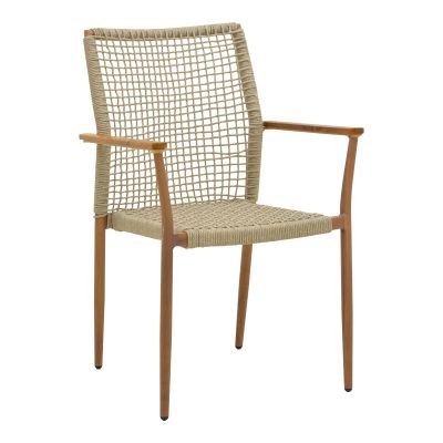 Πολυθρόνα Solana pakoworld στοιβαζόμενη- teak ξύλο- αλουμίνιο σε καφέ-pe σχοινί σε φυσική απόχρωση 56x57x95εκ