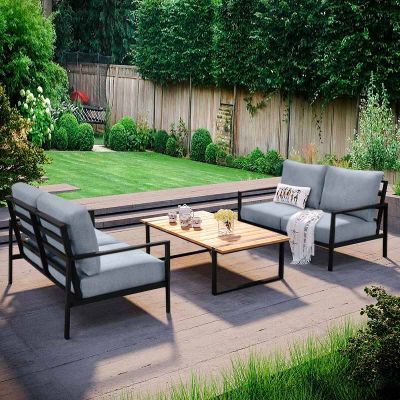 5. Σαλόνι κήπου γωνιακό Artemis Megapap σετ 4 τμχ μέταλλο - ξύλο χρώμα μαύρο - καρυδί