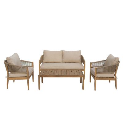 Σαλόνι εξωτερικού χώρου Lemanda pakoworld μασίφ ξύλο ακακίας με σχοινί και μπεζ μαξιλάρια