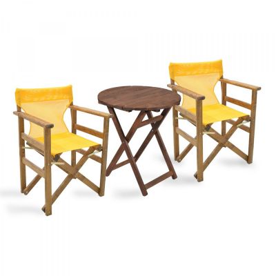 23. Σετ κήπου "SUNSET" 3 τμχ από ξύλο/textilene σε χρώμα καρυδί/κίτρινο Φ70x76