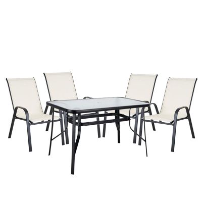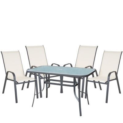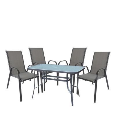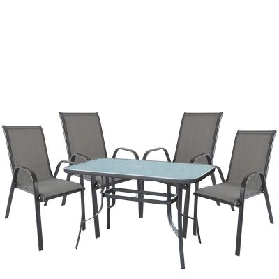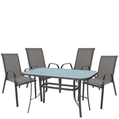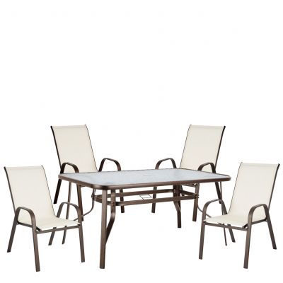 Σετ Τραπεζαρία Κήπου ArteLibre SUN Κρεμ/Καφέ Μέταλλο/Textilene/Γυαλί Με 4 Πολυθρόνες 14990481