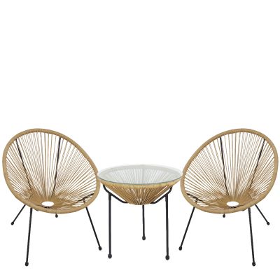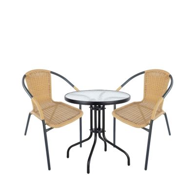 Σετ Τραπεζαρία Κήπου ArteLibre ARELLIUS Φυσικό/Μαύρο Μέταλλο/Rattan/Γυαλί Με 2 Καρέκλες 14990341