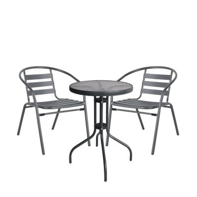 Σετ Τραπεζαρία Κήπου ArteLibre MARS Μέταλλο Γκρι Με 2 Πολυθρόνες