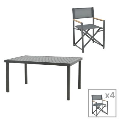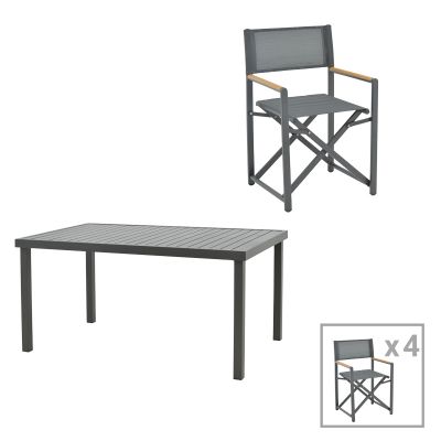 15. Τραπεζαρία Mabu-Klinton σετ 5τεμ pakoworld αλουμίνιο και ύφασμα σε ανθρακί απόχρωση 150x80x74εκ