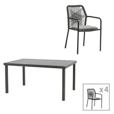 19. Τραπεζαρία Kherson-Kliton A σετ 5τεμ pakoworld αλουμινίου και σχοινί σε ανθρακί απόχρωση 150x80x74εκ