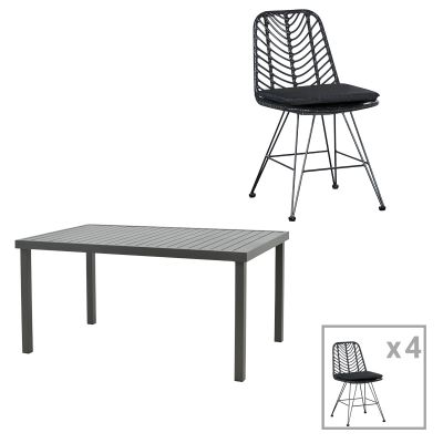 7. Τραπεζαρία Naoki-Kliton I σετ 5τεμ pakoworld ανθρακί αλουμίνιο και pe rattan σε μαύρη απόχρωση 150x80x74εκ