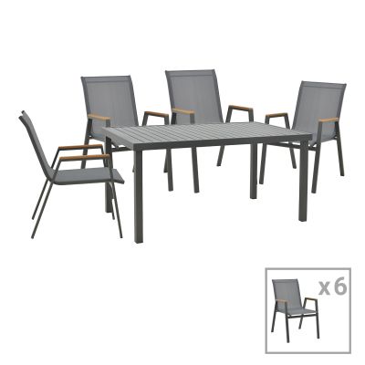 3. Τραπεζαρία Moly-Kliton B σετ 7τεμ pakoworld αλουμινίου και ανθρακί textilene 150x80x74εκ