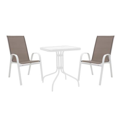 Τραπεζαρία Watson-Calan pakoworld σετ 3τεμ μέταλλο λευκό- γυαλί 70x70x70εκ