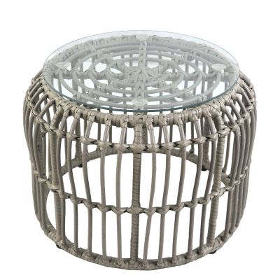 Τραπεζάκι Κήπου ArteLibre ALBIUS Γκρι Rattan/Μέταλλο/Γυαλί Φ50x35cm