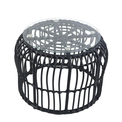 Τραπεζάκι Κήπου ArteLibre AURIUS Μαύρο Rattan/Γυαλί Φ45x40cm