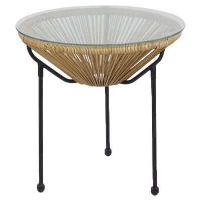 Τραπέζι Κήπου ArteLibre GANYMEDE Φυσικό/Μαύρο Μέταλλο/Γυαλί/Rattan Φ50x50cm