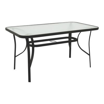 24. Τραπέζι Ensure pakoworld ανθρακί μέταλλο-tempered γυαλί 140x80x70εκ