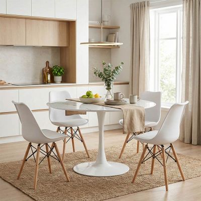 Τραπεζαρία Julita-Balou pakoworld σετ 5τεμ pp-mdf σε λευκό μαρμάρου απόχρωση Φ120x73εκ