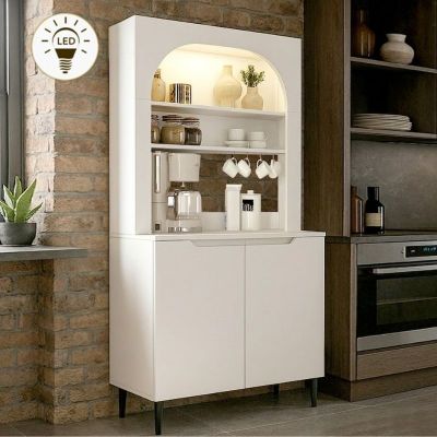 Έπιπλο κουζίνας με LED Melinta 2 Megapap χρώμα λευκό 90x40x181,8εκ.