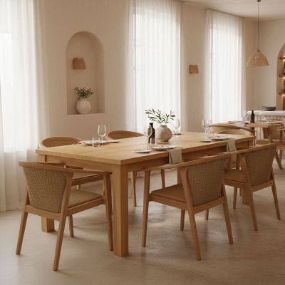 Τραπεζαρία 7τεμ Elaiza-Wooly pakoworld teak ξύλο σε φυσική-μπεζ απόχρωση 220x90x75εκ