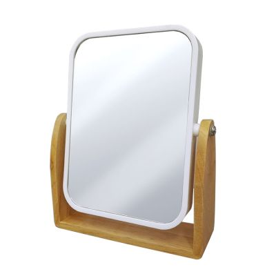 Καθρέπτης Μπάνιου Με Ξύλινη Βάση Λευκό/Καφέ Πλαστικό/Ξύλο 16x5x20cm