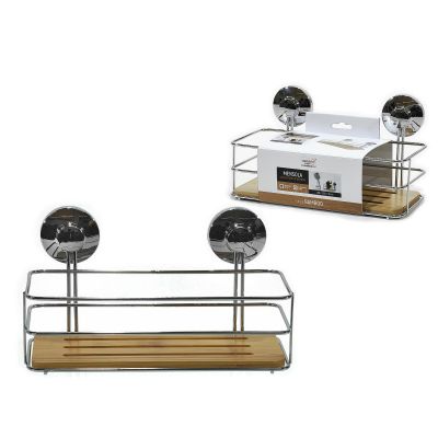 Ράφι Μπάνιου Με Βεντούζες Ασημί/Φυσικό Μέταλλο/Μπαμπού 26x13x14cm