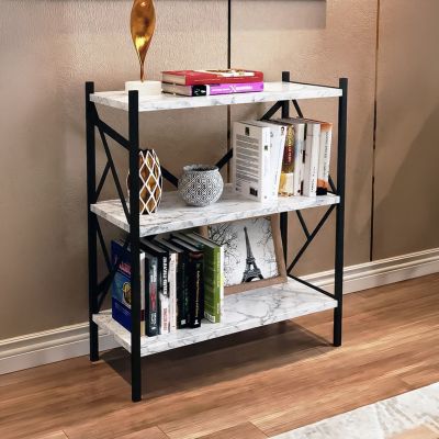 Ραφιέρα επιδαπέδια Althea pakoworld λευκό μαρμάρου με μαύρο μέταλλο 60x30x90εκ