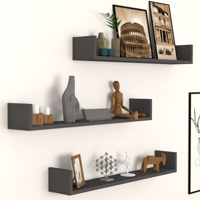 21. Ραφιέρα τοίχου Tyrion Megapap 3 τεμαχίων από μελαμίνη χρώμα ανθρακί 90x15x12εκ.