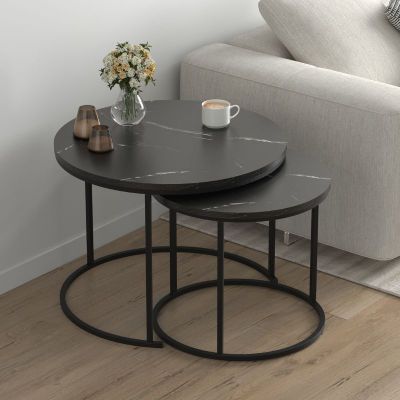 Τραπεζάκι σαλονιού σετ 2 τμχ Hilal Megapap χρώμα μαύρο εφέ μαρμάρου Ø66x49,5εκ.