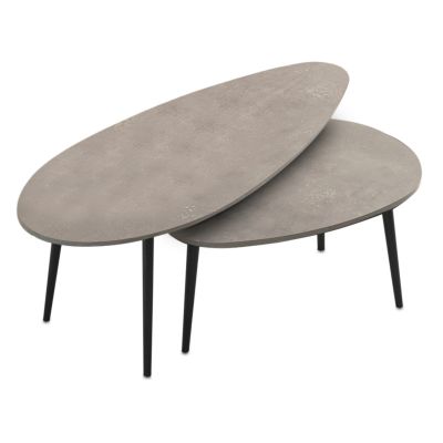 13. Τραπεζάκι σαλονιού σετ 2 τμχ Elips Megapap χρώμα γκρι ρετρό 116x46x46εκ.