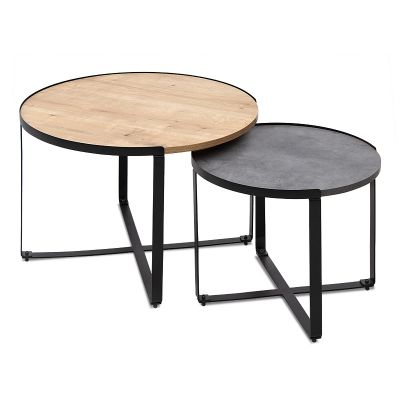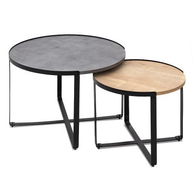 23. Σετ τραπεζάκια σαλονιού Davis Megapap 2τμχ. χρώμα γκρι σκυροδέματος/φυσικό οξιάς 70x69x46εκ.