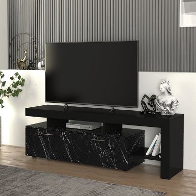 21. Έπιπλο τηλεόρασης Veyron Megapap από μελαμίνη χρώμα μαύρο rebab - μαύρο εφέ μαρμάρου 180x32,3x45εκ.