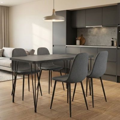 Σετ τραπεζαρία 5τμχ Roger - Iris Megapap Mdf - ύφασμα χρώμα σκούρο γκρι σκυροδέματος - γκρι 120x70x75εκ.