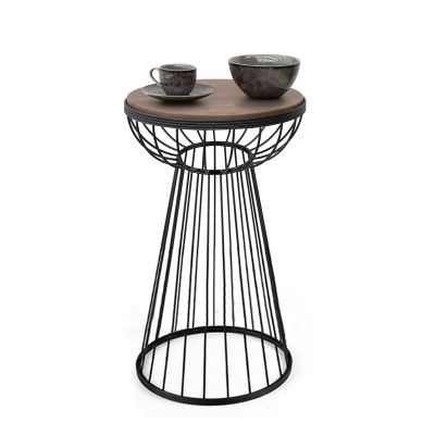 15. Βοηθητικό τραπεζάκι Mantare Megapap μεταλλικό - Mdf χρώμα μαύρο - καρυδί 35x35x58εκ.