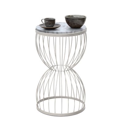 8. Βοηθητικό τραπεζάκι Pino Megapap μεταλλικό - Mdf χρώμα λευκό - λευκό εφέ μαρμάρου 35x35x58εκ.