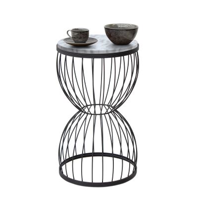 7. Βοηθητικό τραπεζάκι Hoffman Megapap μεταλλικό - Mdf χρώμα μαύρο - λευκό εφέ μαρμάρου 35x35x58εκ.
