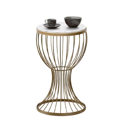 3. Βοηθητικό τραπεζάκι Tekosi Megapap μεταλλικό - Mdf χρώμα χρυσό - λευκό εφέ μαρμάρου 35x35x58εκ.