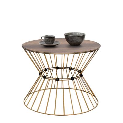 21. Τραπεζάκι σαλονιού Girene Megapap μεταλλικό - Mdf χρώμα χρυσό - καρυδί Ø55x42εκ.