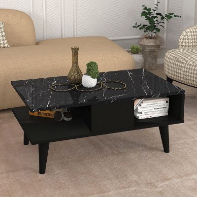 Τραπεζάκι σαλονιού Andros Megapap χρώμα μαύρο - μαύρο εφέ μαρμάρου 90x54x39,6εκ.