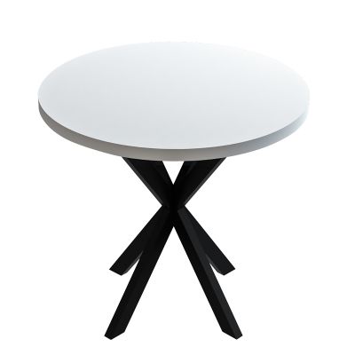19. Τραπέζι Kalipso pakoworld μελαμίνη σε λευκή απόχρωση και μαύρο μεταλλικό πόδι Φ70x75εκ