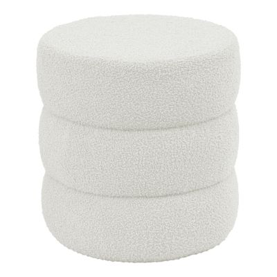 19. Σκαμπό-πουφ Kioto pakoworld μπουκλέ λευκό Φ40x40εκ