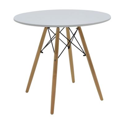 Τραπέζι Julita pakoworld MDF λευκό-πόδια σε φυσική απόχρωση Φ80x73εκ