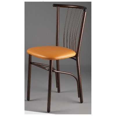 2. Καρέκλα μεταλλική με πάτο δερματίνης σε χρώμα καφέ
