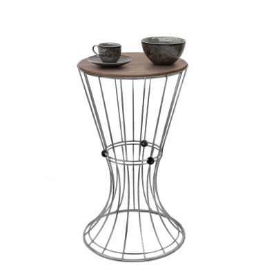 6. Βοηθητικό τραπεζάκι Girene Megapap μεταλλικό - Mdf χρώμα ασημί - καρυδί 32x32x58εκ.