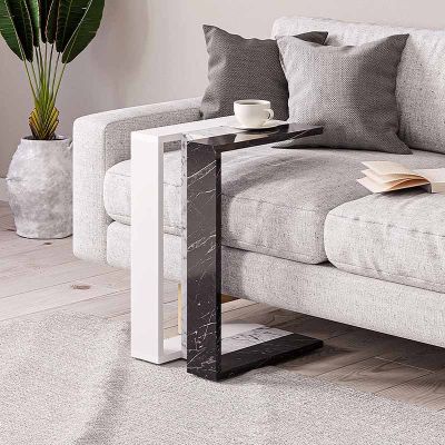 24. Τραπεζάκι βοηθητικό Muju Megapap μελαμίνης χρώμα μαύρο - λευκό εφέ μαρμάρου/λευκό 30x40x57εκ.