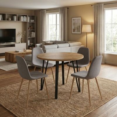 Σετ τραπεζαρία 5τμχ Rubes - Viva Megapap χρώμα φυσικό οξιάς - γκρι Ø100x78εκ.