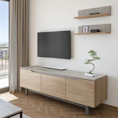 15. Σύνθετο σαλονιού Kasia pakoworld μπεζ μαρμάρου-sonoma 180x35x48.5εκ
