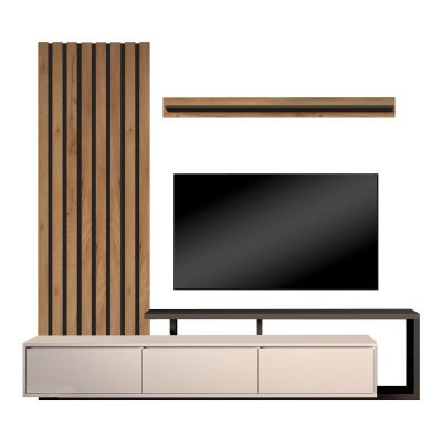 21. Σύνθεση τηλεόρασης Stamatia Megapap από μελαμίνη χρώμα λευκό - καρυδί 210x36,8x46,8εκ.