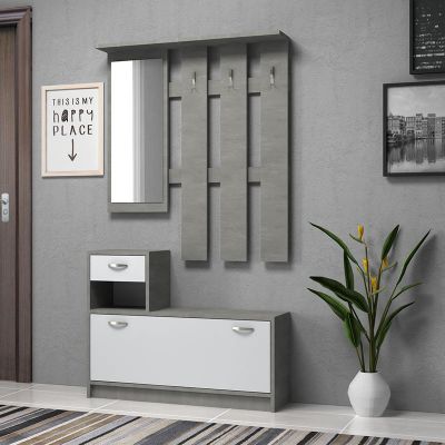 16. Έπιπλο εισόδου μελαμίνης Raynold Megapap χρώμα γκρι σκυροδέματος - λευκό 100x30x180εκ.