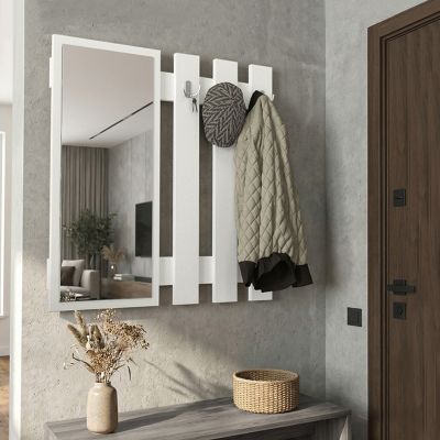 Κρεμάστρα τοίχου με καθρέπτη Folin Megapap χρώμα λευκό 90x4x90εκ.