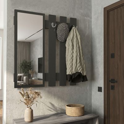 Κρεμάστρα τοίχου με καθρέπτη Folin Megapap χρώμα ανθρακί 90x4x90εκ.